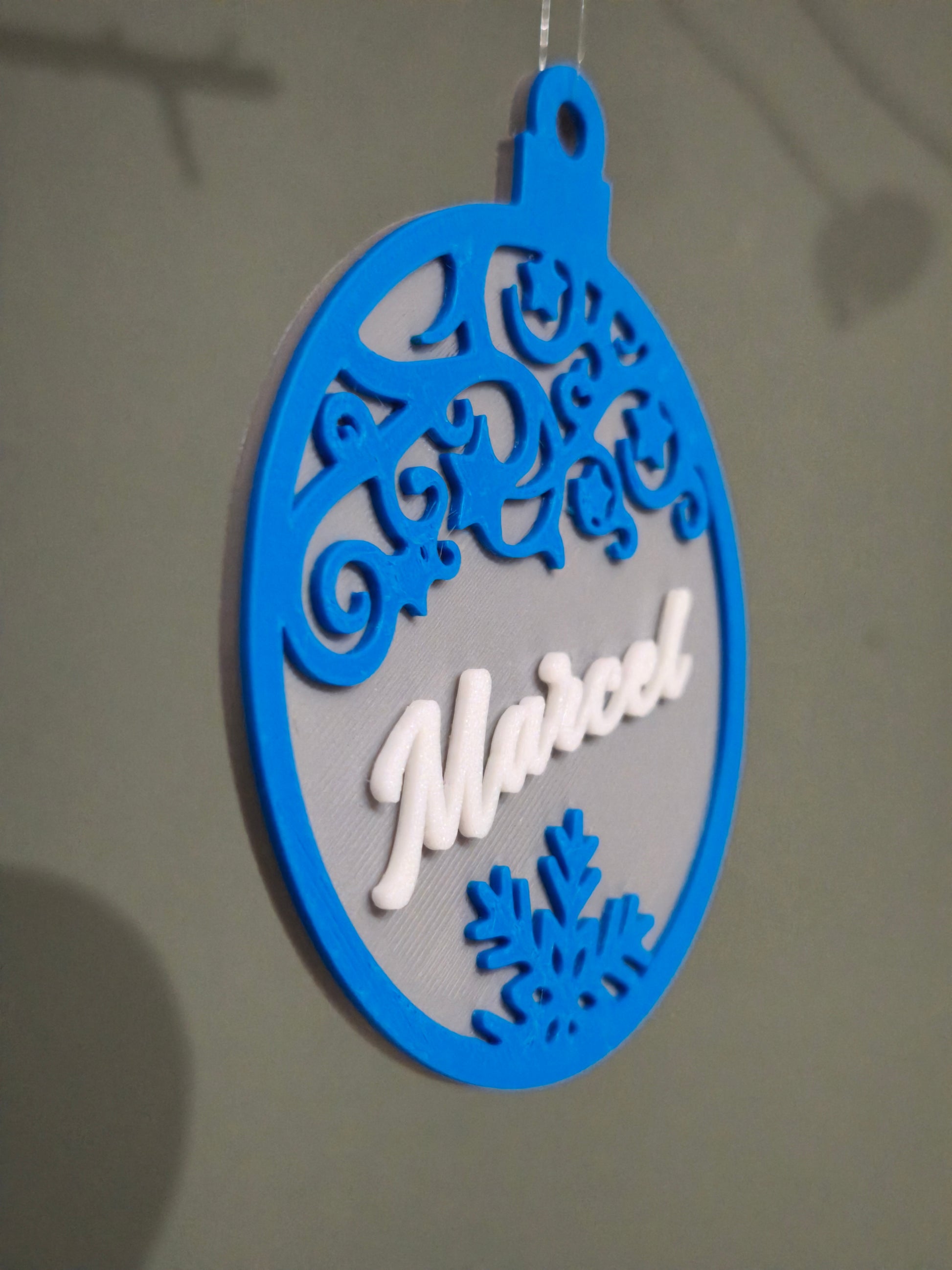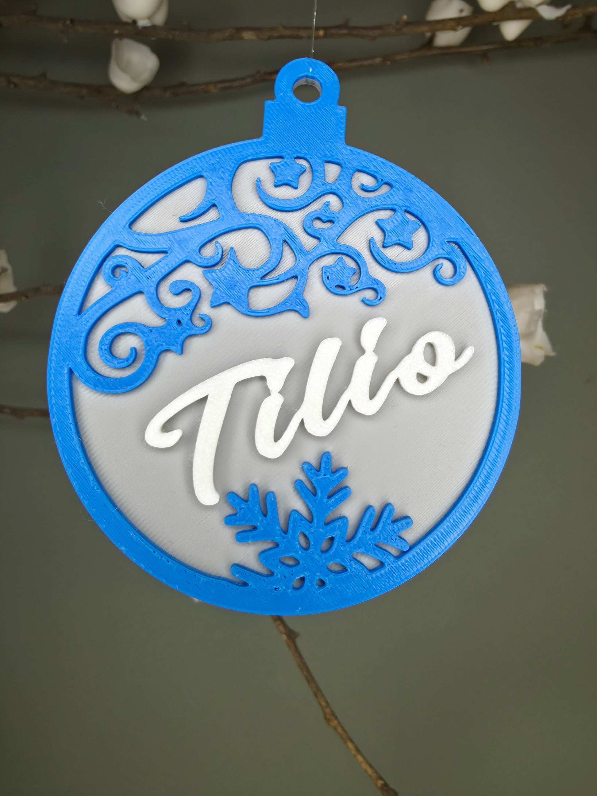Boule de Noël personnalisable conçue par impression 3D en matériau PLA de qualité. Dimensions précises : 85 mm de diamètre avec parois de 4 mm d'épaisseur pour une robustesse optimale. Le processus de personnalisation est clairement documenté dans notre en tête de la collection, permettant une customisation sans complications. Transformez vos ornements festifs en créations uniques et mémorables.